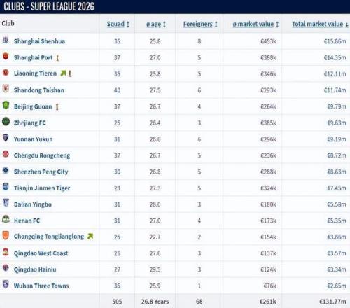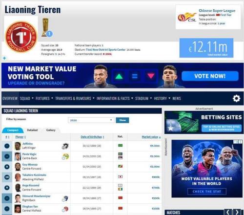 中超好看了!遼寧鐵人是中超身價前6名中:唯一沒被扣分球隊!