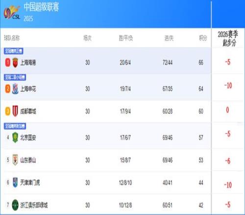 看看2025賽季中超積分榜(上圖),中超前7名中就有6隊(duì)被扣分,最少被扣5分,最高是-10分。除了成都蓉城,有能力爭(zhēng)冠的其他球隊(duì)中,第一名上海海港扣5分,第二名申花扣10分,第四名北京國(guó)安扣5分,第五名山東泰山扣6分,第六名天津津門虎扣10分,第七名浙江隊(duì)扣5分。 也就是說(shuō),新賽季的中超聯(lián)賽還沒(méi)踢,成都蓉城就已經(jīng)握有5分的優(yōu)勢(shì)在手,奪冠機(jī)會(huì)劇增,成都球迷喜大普奔啊。只可惜,新賽季的成都蓉城已經(jīng)不再是去年的成都蓉城,球隊(duì)主帥和很多主力都變了。球隊(duì)變量太大太多,不好講。如果是去年的成都蓉城,今年真有可能奪冠。