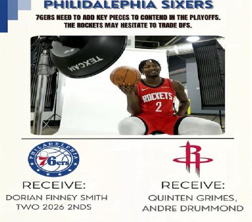緊接著有愛操心的美媒出謀劃策,如下: 火箭得到格萊姆斯+德拉蒙德; 費(fèi)城得到芬尼-史密斯+兩個(gè)26年次輪簽。
