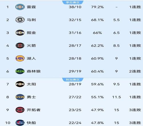 目前為止,火箭以28勝17負(fù)排名西部第四,僅領(lǐng)先第五的湖人(28-18)0.5個(gè)勝場,領(lǐng)先第六的森林狼(29-19)和第七的太陽(28-19)1個(gè)勝場,正面臨著掉出季后賽區(qū)域的危險(xiǎn)。