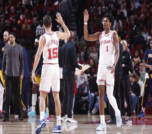 但問題也隨之而來:當(dāng)謝潑德與申京同時(shí)在場(chǎng)時(shí),他的持球權(quán)幾乎被剝奪,球權(quán)基本交給申京,他只能站到底角等待機(jī)會(huì)。這導(dǎo)致小謝的持球優(yōu)勢(shì)無法發(fā)揮,進(jìn)攻效率下降。烏度卡面臨的最大挑戰(zhàn),就是如何合理分配球權(quán),給謝潑德足夠的戰(zhàn)術(shù)地位,讓他成為真正的進(jìn)攻發(fā)起點(diǎn)之一,而不是單純的定點(diǎn)射手。不過謝潑德在火箭未來是美好的?;鸺芾韺雍徒叹毥M的態(tài)度非常明確:他們?nèi)ε囵B(yǎng)謝潑德,不會(huì)通過交易引進(jìn)新控衛(wèi)。據(jù)ESPN記者M(jìn)ichael C. Wright報(bào)道,烏度卡已明確表示,交易截止日前火箭不會(huì)追求控衛(wèi)位置。