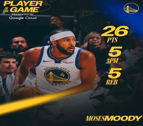 憑借這樣的表現(xiàn),穆迪在賽后被勇士隊(duì)官方評選為本場最佳。