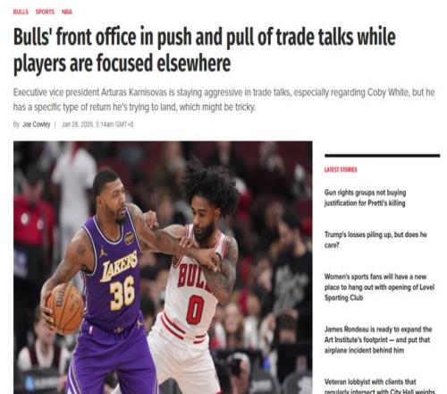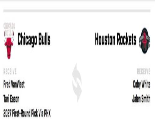 潛在交易方案如下 火箭得到:科比懷特+杰倫史密斯; 公牛得到:范喬丹+伊森+太陽隊(duì)2027年首輪簽。