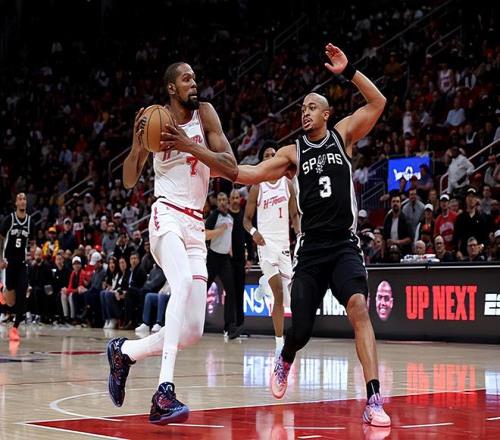 本場(chǎng)比賽中,火箭的先發(fā)鋒線球星凱文-杜蘭特(Kevin Durant)的表現(xiàn)只能算是中規(guī)中矩,而且他在比賽關(guān)鍵時(shí)刻也沒(méi)有起到應(yīng)該起到的作用。杜蘭特全場(chǎng)出場(chǎng)36分10秒,投籃17中8,三分線外4中2,罰球6中6,得到了24分2籃板6助攻1蓋帽的數(shù)據(jù),還有3次失誤和2次犯規(guī),正負(fù)值為-9。杜蘭特在上下半場(chǎng)的表現(xiàn)存在著巨大的差異,他在上半場(chǎng)表現(xiàn)不錯(cuò),拿下了13分。即使是在第三節(jié),他其實(shí)也是起到了一定的作用的,并且通過(guò)各種方式拿下了7分。然而到了比賽第四節(jié),在全隊(duì)進(jìn)攻啞火的情況下,杜蘭特完全沒(méi)有展現(xiàn)出自己的硬解能力,他僅以4中1的效率得到了4分,完全沒(méi)有承擔(dān)起應(yīng)該承擔(dān)的責(zé)任。不僅如此,杜蘭特在其他方面的表現(xiàn)也是令人失望的,也同樣沒(méi)有起到作用,這也在一定程度上導(dǎo)致了球隊(duì)的這場(chǎng)失利。