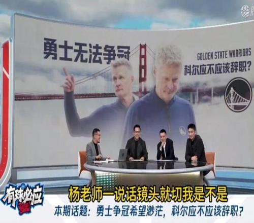 如果你讓剛下課的楊鳴,直接回應(yīng)那些事兒、談看法、聊未來... 這不合適。 再說了,以楊指導(dǎo)的情商,他也不會講太多內(nèi)容,必然會“和稀泥”。 但是,這期節(jié)目借NBA勇士主帥科爾是否該辭職的話題,用“王朝教練需與球隊同甘共苦”等隱喻言論,直指剛卸任遼寧男籃的楊鳴... 這,太高了。 聊勇士隊,講科爾,這不過分吧? 楊毅以勇士為案例,強調(diào)“王朝教練應(yīng)與球隊榮辱與共”。 并列舉“四年三冠”、“名宿轉(zhuǎn)型少帥”、“雙子星離隊后獨木難支”、“內(nèi)線老化”等關(guān)鍵詞。 其核心言論包括:“過去拿冠軍時屆屆都有您,守城責任時也該有您!” 楊鳴的看法:“共患難”需高度職業(yè)化環(huán)境支撐,指出教練需為引援擔責,但球迷預(yù)期不會因重建降低。