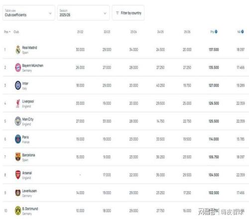從單獨的俱樂部排名來看,歐足聯也公布了最新的積分,皇家馬德里和拜仁慕尼黑依然是歐洲排名前兩位的球隊,利物浦和曼城兩支英超球隊正在苦苦追趕,如果發(fā)揮出色的話,本賽季末的積分,有機會超越榜首雙雄。這個積分榜最大的看點,會影響三大杯賽聯賽階段,各支球隊的檔次劃分,除了第一檔之外,分數越高,檔次就越高。 從表格看出,阿森納本賽季得到29.5分,分別是8連勝得到16分的比賽積分,加上第一名獎勵12分,晉級16強獎勵1.5分。拜仁慕尼黑得到27.25分,分別是7勝14分,加上第二名獎勵11.75分,16強獎勵1.5分?;始荫R德里5勝有10分,第9名的排名獎勵也是10分,還沒有晉級16強,所以合計20分,其余球隊,可以照此類推。 值得一提的是,俱樂部積分是按照最近5年的成績合計來計算,下賽季開始后,就會移除2021/22賽季的分數,而那個賽季,國際米蘭只有18分,減少得并不多,阿森納由于沒有參賽,只有0分,也就是不會減少。因此,在下賽季初,國際米蘭或者阿森納,很有可能成為歐洲排名第一的球隊,這樣的結果,符合大家的預期嗎? |