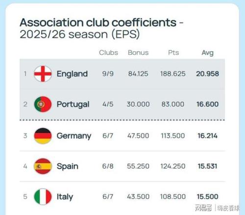 本賽季,對于獎勵部分制定了新的規(guī)則,主要體現在聯賽階段的獎勵,不再像過去那樣,簡單劃分為晉級和不晉級兩種,而是按照排名的先后,每一個排名對應著不同的分數,排名越高,獎勵越多,三大杯賽也有不同的權重之分。 歐冠第一的阿森納得到12分的獎勵,歐聯杯和歐協聯的榜首,里昂和斯特拉斯堡,分別有6分和4分。不難看出,這個獎勵積分十分豐厚,阿森納相當于多贏了6場比賽。 顯然,英超6隊闖進前八名,另外3隊,紐卡斯爾第12名,諾丁漢森林第13名,水晶宮第10名,從而導致9支球隊獲得的獎勵積分相當高。因此,受益于新規(guī)則,英超得以進一步擴大領先優(yōu)勢。