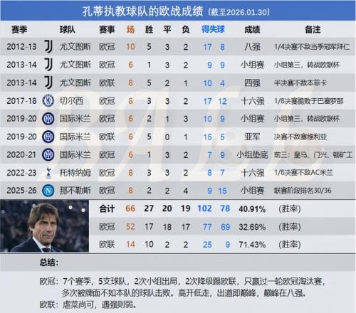 需要說(shuō)明的是,“球隊(duì)數(shù)”僅指參加了三大杯正賽的球隊(duì),不包括在資格賽階段出局的球隊(duì)。 英超9隊(duì)出征,6隊(duì)直接晉級(jí)淘汰賽階段,3隊(duì)獲得附加賽資格,都有機(jī)會(huì)晉級(jí)十六強(qiáng)。 其他四大聯(lián)賽中,西甲、法甲各有2隊(duì),德甲、意甲各有1隊(duì)出局。相較之下,意甲僅有1隊(duì)直接晉級(jí)十六強(qiáng),多達(dá)5隊(duì)落入附加賽區(qū)間,猶為扎眼。 在西甲中舉步維艱的畢爾巴鄂無(wú)奈出局,應(yīng)該是實(shí)力所限,非戰(zhàn)之罪;而西甲一度排名第二的比利亞雷亞爾,8場(chǎng)比賽僅得1分,難免有主動(dòng)放棄之嫌。 這種情況,意甲球迷應(yīng)該不會(huì)陌生。我考慮的是,如果一個(gè)足協(xié)站在為本國(guó)爭(zhēng)取更好成績(jī)、爭(zhēng)奪更大話語(yǔ)權(quán)的角度,是否應(yīng)該出臺(tái)政策,對(duì)那些在歐戰(zhàn)中出工不出力的球隊(duì)進(jìn)行針對(duì)性的處罰?當(dāng)然這存在技術(shù)性的問(wèn)題,先放一邊。用國(guó)人最容易理解的場(chǎng)景來(lái)比喻,一個(gè)舞臺(tái)只有最優(yōu)秀的選手有資格登場(chǎng),某國(guó)由于上一屆選手的不懈努力,為他們的同胞爭(zhēng)取到了更多名額。這些搭了便車(chē)的人,本應(yīng)展現(xiàn)最強(qiáng)的一面,哪怕輸也要輸?shù)秒m敗猶榮。結(jié)果你只是拿了出場(chǎng)費(fèi)就認(rèn)輸,汗都不出就回國(guó)爆錘為你贏得登臺(tái)機(jī)會(huì)的兄弟? 意甲的沒(méi)落除了實(shí)力有限,有些球隊(duì)壓根就不想玩也是一個(gè)重要因素。沒(méi)錯(cuò),說(shuō)的就是你,孔蒂! 熟悉孔蒂的球迷應(yīng)該不會(huì)對(duì)那不勒斯的出局感到意外?!皢尉€之王”的另一種叫法是“內(nèi)戰(zhàn)內(nèi)行,外戰(zhàn)外行”。話說(shuō)給你一分鐘,你能說(shuō)出孔蒂的球隊(duì)在歐的代表作嗎?不能?這就對(duì)了,查了數(shù)據(jù)我也不能。 由于本篇不是單獨(dú)說(shuō)意甲,這里單獨(dú)分享一下孔蒂這些年在歐戰(zhàn)的杰作以結(jié)束這個(gè)段落。