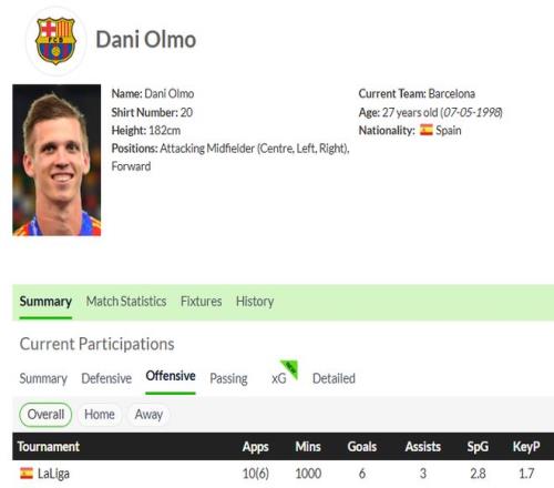 本賽季至今,奧爾莫西甲10次先發(fā)6次替補,踢了1000分鐘,貢獻了6球3助攻,差不多每110分鐘就能參與一個進球,這個效率還是很高的。 再考慮到他每60分鐘貢獻1.7次關鍵傳球,這個數(shù)據(jù)相當醒目。奧爾莫在組織進攻方面的才華,還是被嚴重低估了。
