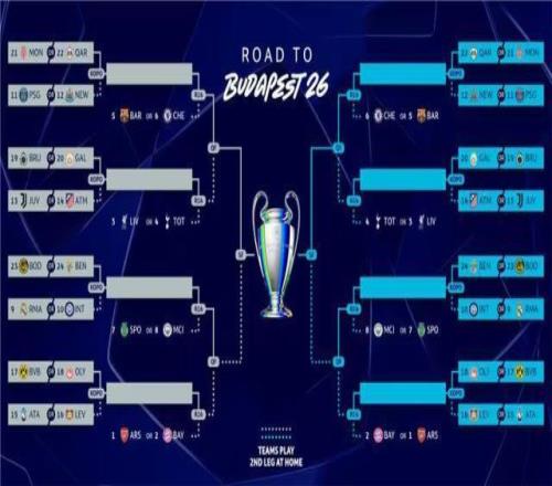 淘汰賽附加賽潛在對(duì)陣*: 對(duì)陣1:摩納哥/卡拉巴赫vs巴黎圣日耳曼/紐卡斯?fàn)柭?lián) 對(duì)陣2:布魯日vs加拉塔薩雷vs尤文圖斯/馬德里競技 對(duì)陣3:博德閃耀/本菲卡vs皇家馬德里/國際米蘭 對(duì)陣4:多特蒙德/奧林匹亞科斯vs亞特蘭大/勒沃庫森 對(duì)陣5:卡拉巴赫/摩納哥vs紐卡斯?fàn)柭?lián)/巴黎圣日耳曼 對(duì)陣6:加拉塔薩雷/布魯日vs馬德里競技/尤文圖斯 對(duì)陣7:本菲卡/博德閃耀vs國際米蘭/皇家馬德里 對(duì)陣8:奧林匹亞科斯/多特蒙德vs勒沃庫森/亞特蘭大 1/8決賽潛在對(duì)陣*: 對(duì)陣1勝者vs巴塞羅那/切爾西 對(duì)陣2勝者vs利物浦/托特納姆熱刺 對(duì)陣3勝者vs里斯本競技/曼城 對(duì)陣4勝者vs阿森納/拜仁慕尼黑 對(duì)陣5勝者vs切爾西/巴塞羅那 對(duì)陣6勝者vs托特納姆熱刺/利物浦 對(duì)陣7勝者vs曼城/里斯本競技 對(duì)陣8勝者vs拜仁慕尼黑/阿森納 *注:潛在對(duì)陣均為列前者先主。 歐冠淘汰賽階段賽程: 淘汰賽附加賽兩回合:2月17/18日&24/25日 1/8決賽兩回合:3月10/11日&17/18日 1/4決賽兩回合:4月7/8日&14/15日 半決賽兩回合:4月28/29日&5月5/6日 決賽:5月30日(布達(dá)佩斯) |
