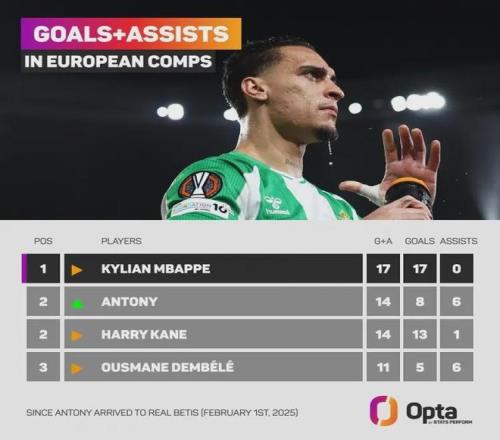 在本賽季歐聯(lián)杯聯(lián)賽階段,安東尼場均接近制造1球,這種恐怖的效率讓他成為了名副其實(shí)的“西甲小王”。今晚的比賽,他更是憑借這傳射建功,讓貝蒂斯成為了西甲在歐戰(zhàn)中的遮羞布。