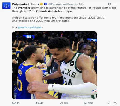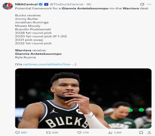 《福布斯體育》記者埃文-斯迪瑞透露,勇士隊(duì)除了能送出4個(gè)首輪簽外,他們2031年的首輪互換權(quán)也可以用于交易揚(yáng)尼斯,而如今的難點(diǎn)在于如何配平薪資。