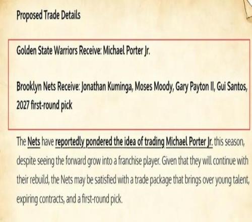 美媒《Fadeaway World》更是提出了一套5換1的交易方案,建議勇士打包送出穆迪、庫明加、桑托斯、小佩頓以及2027年的首輪簽,從籃網引入小波特。 小波特是特別適配勇士的鋒線,勇士現(xiàn)在最缺的就是穩(wěn)定的外線火力和優(yōu)質鋒線,庫里身邊太需要這種不用持球的頂級射手,他的無球打法能完美融入勇士的傳切體系,既能和庫里形成恐怖的外線組合,又能給庫里減負。