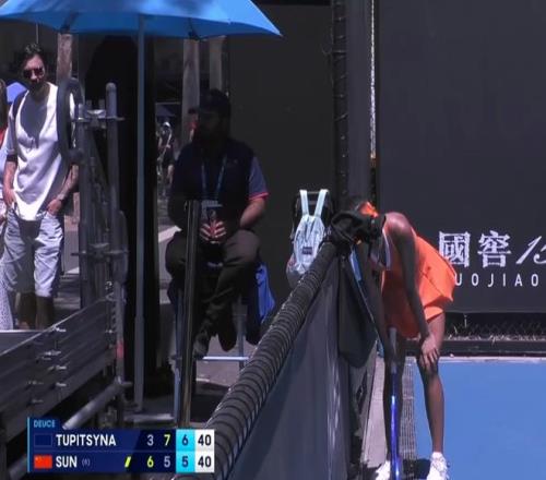雙方進(jìn)入決勝盤爭奪。孫心然一度取得了4比2的領(lǐng)先優(yōu)勢,并且來到5比4領(lǐng)先,但是非常遺憾的是,她被圖皮岑娜破發(fā),從而被追到5比5。 高溫天氣讓孫心然身體不適,這場比賽她屢屢在比賽間隙彎腰休息。圖皮岑娜隨后保發(fā)成功,來到了孫心然非保不可的發(fā)球局。體能消耗巨大的孫心然回球缺少足夠的威脅性,缺少反擊的力度,只能等待圖皮岑娜出現(xiàn)失誤,但是對手的失誤很少。