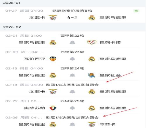 北京時(shí)間2026年1月31日消息。歐冠聯(lián)賽改制后,讓附加賽資格賽的賽程,變得殘酷而又有趣:上賽季,首次實(shí)行歐冠改制,淘汰賽就出現(xiàn)了皇馬VS曼城的超級(jí)對(duì)決。結(jié)果瓜迪奧拉的曼城出局?!@一次,主角又是皇馬,他們?cè)谙鄬?duì)不錯(cuò)的局面下,解雇阿隆索,換上阿韋洛亞,軍心不穩(wěn),士氣一般。關(guān)鍵時(shí)刻面對(duì)實(shí)力一般的本菲卡,卻客場(chǎng)2-4告負(fù),這導(dǎo)致的結(jié)果是,皇馬跌至第9,且本菲卡沖到第24名。剛剛好:第9迎戰(zhàn)第24,穆里尼奧將率隊(duì)再戰(zhàn)皇馬。