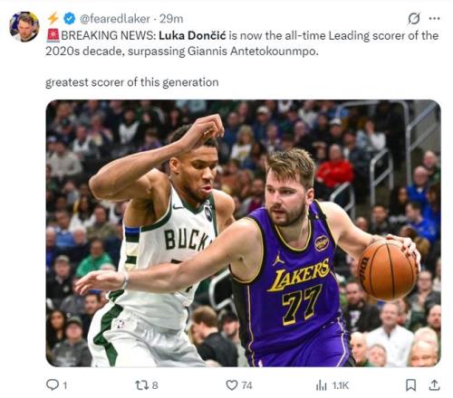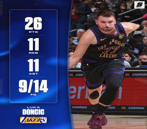 2.憑借上半場拿到的26分,東契奇也超越揚(yáng)尼斯成為2020年代的新得分王,盧卡-東契奇是真的一代超巨。 3.18分04秒達(dá)成三雙后衛(wèi)歷史第二快,僅次于威少; 4.18分04秒拿到三雙湖人隊(duì)史最快; 5.半場25分+三雙有記錄以來第二人,第一人是23年的自己;