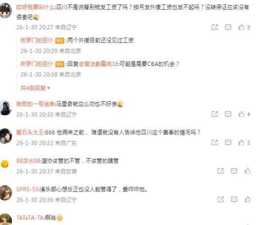 四川男籃在去年夏天,就深陷欠薪丑聞,當(dāng)時球隊本土球員集體寫聯(lián)名信控訴欠薪,且上賽季的外援也通過社媒表示他們也被欠薪。