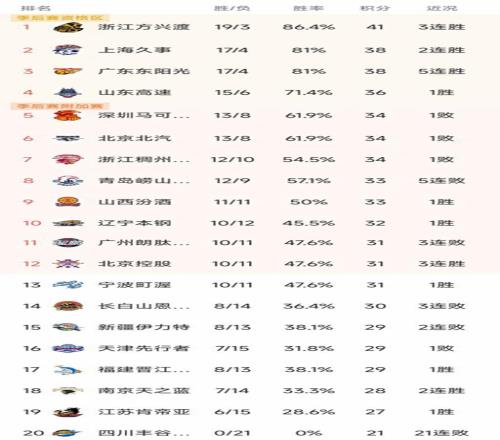 CBA常規(guī)賽第22輪結(jié)束了4場比賽,最新積分榜如下!