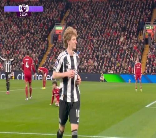 英超第24輪,紐卡斯?fàn)柭?lián)客場對陣?yán)锲?,上半場安東尼-戈登破門為紐卡取得領(lǐng)先,至此,戈登英超生涯對陣?yán)锲忠汛蛉?球,利物浦是戈登英超生涯進(jìn)球并列最多的對手。