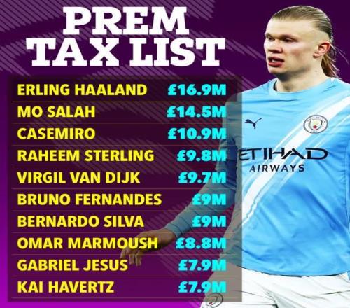根據(jù)《泰晤士報》的調(diào)查結果,哈蘭德在2025年繳了1690萬英鎊的稅款,遠高于英超聯(lián)賽的其他球員。