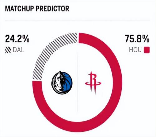 這是兩隊本賽季的第四次交鋒,前三次交手,火箭僅僅只有1勝2負,獨行俠意外稍占優(yōu)勢。賽前,美媒ESPN對本場比賽進行了勝率預測,火箭隊勝率高達75.7% ,優(yōu)勢巨大,而獨行俠勝率則僅為24.3% 。