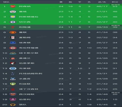 北京時(shí)間2月1日,英超第24輪率先結(jié)束了5場(chǎng)比賽,我們看看最新積分榜變動(dòng),主要的信息如下:利茲聯(lián)0-4慘敗阿森納,切爾西3-2戰(zhàn)勝西漢姆聯(lián)、利物浦4-1戰(zhàn)勝紐卡斯?fàn)柭?lián)、布萊頓1-1埃弗頓、狼隊(duì)0-2伯恩茅斯!  英超最新積分榜