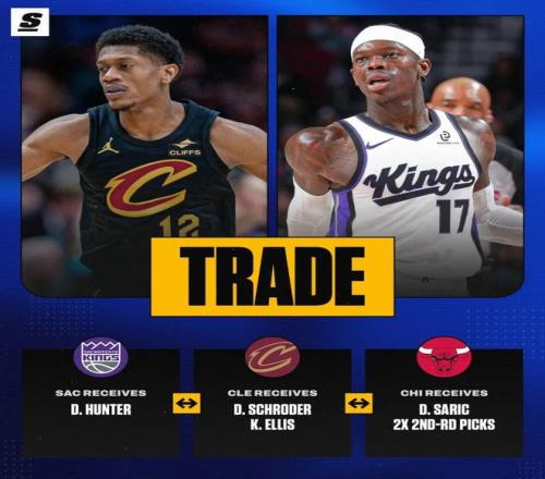 本賽季的第二筆交易,終于來了。 來自名記Shams的報道,騎士、國王、公牛達成一筆三方交易,具體內(nèi)容為: 騎士得到:施羅德、埃利斯 國王得到:亨特 公牛得到:薩里奇、兩個未來次輪選秀權(quán)