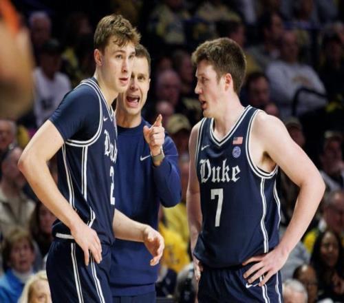 沙伊爾在招募過(guò)程中就發(fā)現(xiàn)了克尼普爾對(duì)體育歷史的熱愛(ài),有一次,他、克尼普爾和副主教練克里斯·卡拉威爾共進(jìn)晚餐,三人玩起了一個(gè)游戲:從2023年開(kāi)始,倒序說(shuō)出NBA和NCAA的冠軍球隊(duì)。結(jié)果克尼普爾同時(shí)擊敗了自己的兩個(gè)教練。 “最后是克尼普爾贏了?!鄙骋翣栒f(shuō),“因?yàn)樗裁炊贾??!?/p> “而且不只是籃球,”弗拉格補(bǔ)充道,“橄欖球、棒球,他都懂,絕對(duì)算得上半個(gè)專(zhuān)家?!?/p> 弗拉格和克尼普爾有許多共同點(diǎn):都成長(zhǎng)于寒冷地區(qū),來(lái)自清一色男孩的大家庭。弗拉格除了雙胞胎兄弟外,還有一個(gè)哥哥亨特;而克尼普爾是五兄弟中的老大,而且五個(gè)人的名字都以“K”開(kāi)頭,弗拉格能一口氣叫出他所有兄弟的名字。 在球場(chǎng)上,二人是天生的互補(bǔ)組合。弗拉格能輕松殺到籃下,攻防兩端樣樣精通;克尼普爾雖然身高和爆發(fā)力不占優(yōu),但有著一手致命遠(yuǎn)投,決策成熟,這源于他多年在父親征戰(zhàn)的業(yè)余聯(lián)賽中磨練出的籃球智商。兩人聯(lián)手,組成了大學(xué)籃球最具威力的雙人組之一。 在ACC錦標(biāo)賽期間,弗拉格因腳踝扭傷缺席大部分比賽,克尼普爾證明了自己可以獨(dú)當(dāng)一面。他率領(lǐng)杜克奪得ACC分區(qū)冠軍,自己榮膺賽事MVP,場(chǎng)均貢獻(xiàn)21分5.7籃板4.7助攻。 而在場(chǎng)邊,為他歡呼最賣(mài)力的,正是弗拉格?!八麄?cè)诟?jìng)爭(zhēng)心、無(wú)私程度以及籃球智商方面完美契合?!鄙骋翣栒f(shuō),“他們都想打球,也都想和家人、朋友待在一起。這就是他們的本質(zhì),也正因?yàn)槿绱耍麄円宦范寄鼙3掷潇o?!?/p>
