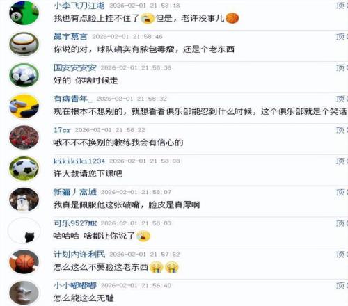 好嘛,輸了也是贏了,果然是贏麻了!難怪看到許利民如此說法,球迷們都忍不住了,“我真是佩服他這張破嘴,臉皮是真厚啊”、“我也有點臉上掛不住了,但是,老許沒事兒”、“現(xiàn)在根本不想別的,就想看看俱樂部能忍到什么時候,這個俱樂部就是個笑話”。