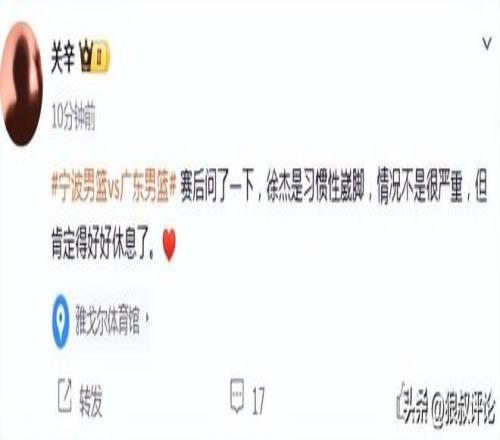 廣東記者:徐杰是習慣性崴腳,情況不是很嚴重但肯定得好好休息了