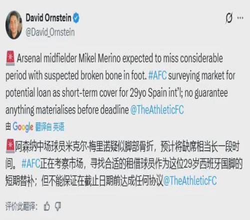 由于梅里諾面臨長期缺陣的危險,這可能將促使阿森納在轉(zhuǎn)會截止日前緊急進(jìn)入市場尋找替代者。在去年夏天豪擲2.605億英鎊后,阿森納在冬窗尚未有任何新援加入。然而,塔帥在冬窗開啟前曾暗示可能進(jìn)行引援。