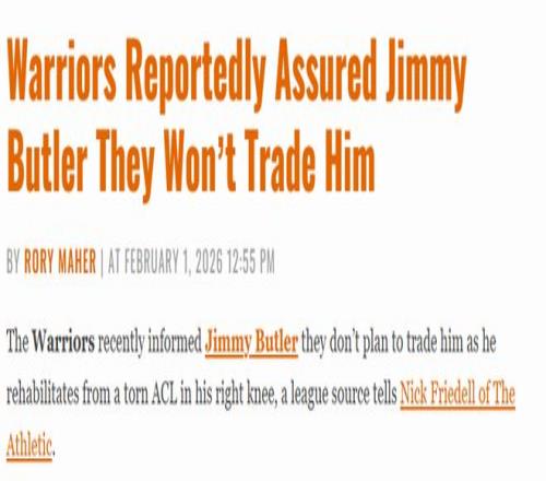 北京時間2月2日,據(jù)勇士隊記弗里德爾報道,聯(lián)盟消息人士透露,勇士隊近期已向吉米-巴特勒做出承諾,鑒于其正處于右膝前交叉韌帶撕裂的康復(fù)期,球隊計劃不會將其交易。