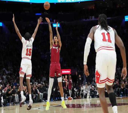 中場休息回來,熱火進攻火力暴跌比第二節(jié)少得到17分,也是首次單節(jié)不超過25分,公牛第二次單節(jié)得分30+。熱火擴大67-56領(lǐng)先優(yōu)勢,公牛一波10-0攻勢追分,雙方持續(xù)纏斗至熱火82-81領(lǐng)先。公牛一波10-1攻勢反超9分,熱火罰球再得1分,熱火單節(jié)21-35輸?shù)?4分,三節(jié)結(jié)束熱火84-91被公牛反超。前三節(jié)比賽,公牛三分命中數(shù)15-9領(lǐng)先,奧科羅19分與多森姆19分,引領(lǐng)5人得分上雙;拉松17分與哈克斯15分,引領(lǐng)4人得分上雙。