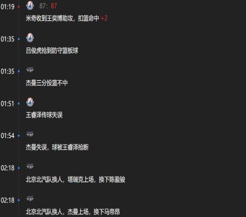 先是王睿澤搶斷杰曼,后續(xù)杰曼三分還沒有打進,這讓青島看到了追平的機會。米奇接到助攻完成扣籃,雙方打成87平。 后續(xù)趙睿三分不中,杰曼還對米奇犯規(guī),米奇連續(xù)罰球打進將比分反超。當然此后北京還有取勝的可能性。無奈的是,趙睿獲得兩次罰球不中,如果這兩個球打進的話,北京可以追平分差。