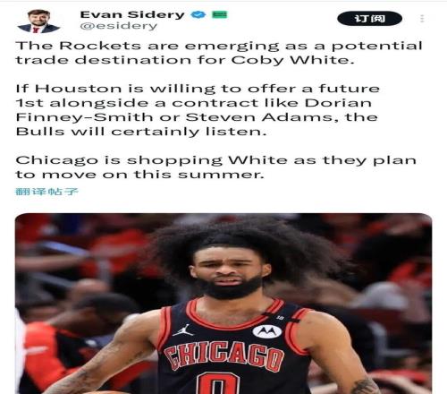 名記Sidery也表示,火箭成為懷特的潛在下家之一,公牛正在評(píng)估交易方案。