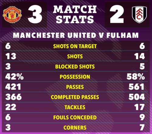 曼聯(lián)在老特拉福德3-2力克富勒姆,球隊(duì)上下半場(chǎng)由卡塞米羅和庫尼亞各入一球,2-0領(lǐng)先,然而比賽最后5分鐘風(fēng)云突變,富勒姆連入兩球扳平。幸好謝什科替補(bǔ)出場(chǎng)完成絕殺,卡里克在弗爵面前上演「弗爵時(shí)間」,實(shí)現(xiàn)三連勝,守住了前四位置,并且逼近了輸球的阿斯頓維拉和曼城。