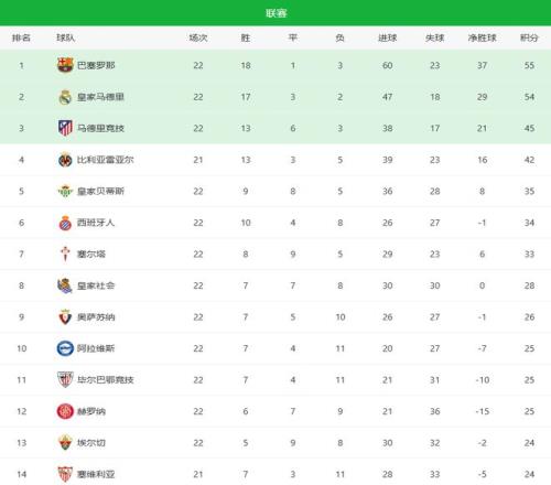 隨著皇馬21絕殺+貝蒂斯21逆轉(zhuǎn)!西甲最新積分榜:巴薩1分領(lǐng)跑