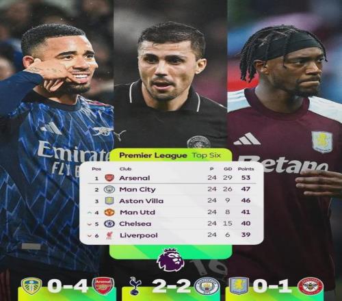 英超第24輪比賽,排名前3的爭(zhēng)冠球隊(duì)表現(xiàn)各不相同。在前一天進(jìn)行的比賽,領(lǐng)頭羊阿森納客場(chǎng)4-0大勝利茲聯(lián),穩(wěn)固了榜首位置。而隨后出戰(zhàn)的維拉卻在主場(chǎng)0-1不敵10人作戰(zhàn)的布倫特福德,而曼城則在客場(chǎng)2-0領(lǐng)先的情況下被熱刺逼平。本輪英超前三的球隊(duì),只有榜首阿森納贏球,他們也將領(lǐng)先優(yōu)勢(shì)拉開到了6分,成為本輪英超最大的贏家。