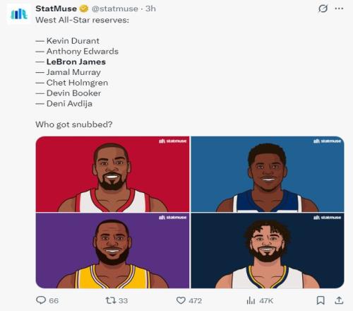 這場比賽之前,NBA官方宣布了西部全明星替補:杜蘭特、華子、詹姆斯、穆雷、霍姆格倫、布克、阿夫迪亞。換言之勒布朗-詹姆斯連續(xù)22年入選全明星。