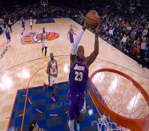 湖人打尼克斯 詹姆斯又上演空接爆扣 41歲還能飛,真的逆天 慢動(dòng)作