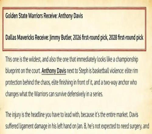3換1!美媒撰重磅交易方案,場(chǎng)均20+11神塔,馳援庫(kù)里