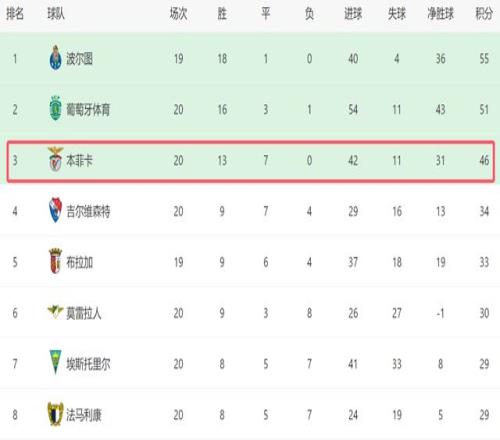 本輪過后,本菲卡在葡超繼續(xù)保持不敗。遺憾的是,前20輪踢完,他們足足有7場平局。也正是因為平局太多,導(dǎo)致本菲卡目前在先賽一場的情況下,落后榜首的波爾圖9分之多,一旦后者本輪能夠在客場拿下卡薩比亞,那雙方的差距將拉大到12分,這個差距足以讓本菲卡絕望。