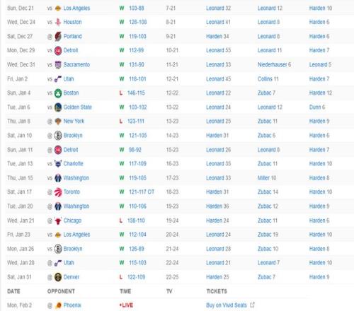 近21戰(zhàn)17勝繼續(xù)北伐!哈登輪休快船仍勇猛無敵暗助湖人重返第六