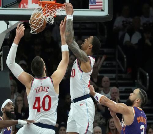 快船與太陽此役都不是全陣容,快船缺少了哈登,太陽缺少了布克、格林,開場兩隊的進攻效率都不高,整個上半場都是拼防守快船也只領先6分,轉折點是在第三節(jié),太陽在第三節(jié)崩盤了(有點湖人三節(jié)崩的意思),第三節(jié)太陽28-36直接被拉開分差。