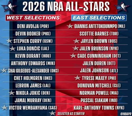 全明星24人大名單!詹杜庫有望再次聯(lián)手,東道主快船0人入選