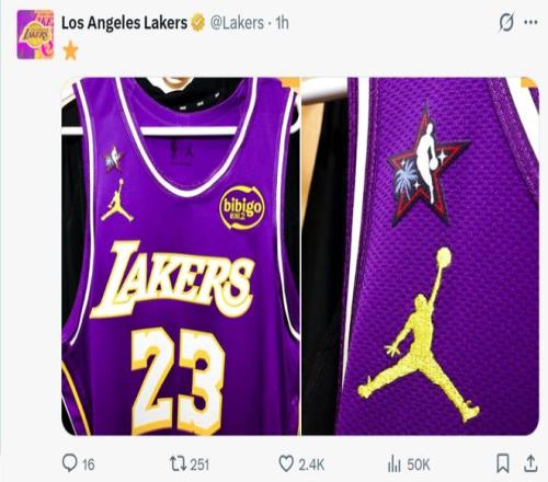 湖人也在賽前第一時間調(diào)整詹姆斯的球衣,用全明星補丁取代了原本的23賽季補丁。