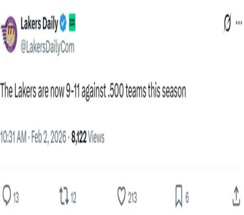東詹雙核空砍52+20+14華麗數(shù)據(jù)!湖人隊(duì)仍不敵尼克斯硬碰硬戰(zhàn)績(jī)跌至9勝11負(fù)勝率不足50%,兩大陣容致命短板肉眼可見。