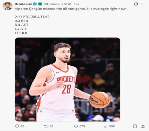 根據(jù)火箭記者Vanessa Richardson的報道,37歲的杜蘭特成為火箭隊史最年輕的全明星球員,他超越了德雷克斯勒、奧拉朱旺(34歲),這兩人在1997年入選了全明星。換言之杜蘭特是火箭隊1967年建隊59年最年輕的全明星球員,評語:精英級的巔峰期。