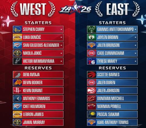 北京時間2月2日,NBA官方公布了東西部全明星替補,西部替補:阿夫迪亞、布克、杜蘭特、愛德華茲、霍姆格倫、詹姆斯、賈馬爾穆雷;東部替補:巴恩斯、杜倫、杰約、多諾萬、鮑威爾、西卡、唐斯。