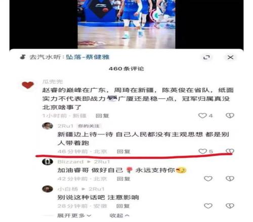 真正引發(fā)風(fēng)波的并非賽場(chǎng)上的失誤,而是賽后在社交媒體上的互動(dòng),一位新疆球迷留言評(píng)價(jià)道:“趙睿的巔峰在廣東,周琦在新疆,陳盈駿在省隊(duì),紙面實(shí)力不代表即戰(zhàn)力,廣廈還是穩(wěn)一點(diǎn),冠軍歸屬真沒(méi)北京啥事了?!?,這句話似乎觸動(dòng)了趙睿敏感的神經(jīng),他的回復(fù)不僅涉及籃球討論,更上升到對(duì)新疆人民的主觀評(píng)價(jià):“新疆邊上待一待,自己人民都沒(méi)有主觀思想,都是別人帶著跑?!?/p>